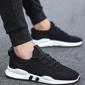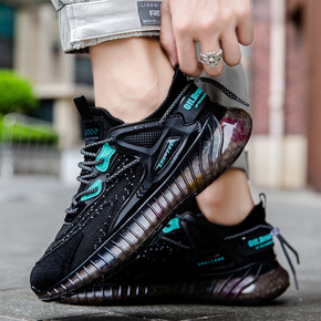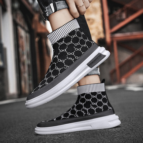 秋季圆头休闲鞋高帮日常袜子鞋新款飞织鞋时尚运动鞋男...