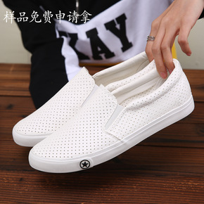 夏季男鞋懒人鞋一脚蹬凉鞋镂空透气学生小白鞋男士休闲...