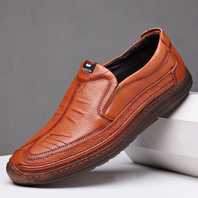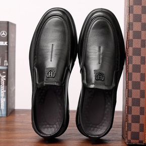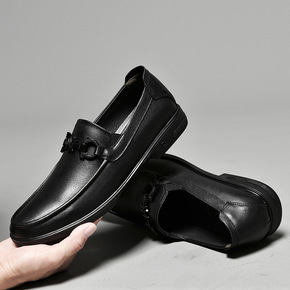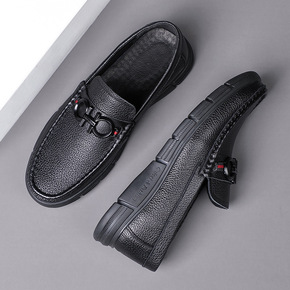 夏季新款头层牛皮豆豆鞋男休闲皮鞋一脚蹬驾车英伦软底...