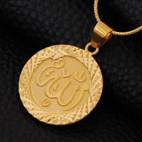 跨境货源厂家直销镀金吊坠圆形手工车花项饰男欧美中东...