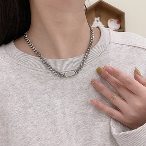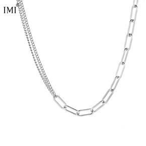 IMI双链拼接锁骨链女短款ins简约钛钢男士嘻哈冷...