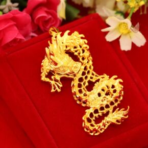 沙金男士霸气大号龙身吊坠 飞龙在天黄铜镀金仿真吊坠...