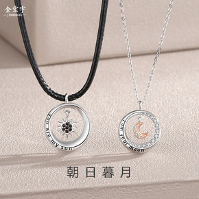 原创新款日月情侣项链一对跳动的心锁骨链男女百搭圆环...