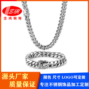 欧美嘻哈潮牌不锈钢圆磨古巴链项链钛钢饰品男士霸气迈...