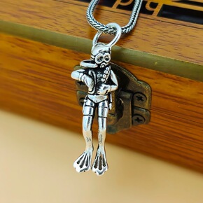 s925纯银 欧美嘻哈街拍男士个性泰银骷髅人吊坠潮...
