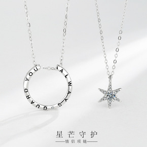 S925原创星愿情侣项链一对男女款小众纯银锁骨链情...