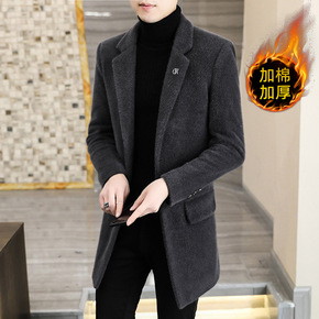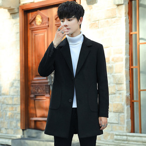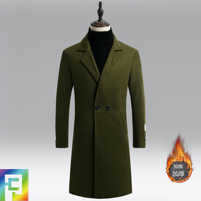 秋冬季爆款加厚毛呢大衣男中长款过膝外套潮流呢子风衣...