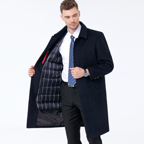 21冬季新款男士毛呢大衣可卸羽绒内胆男士英伦帅气中...