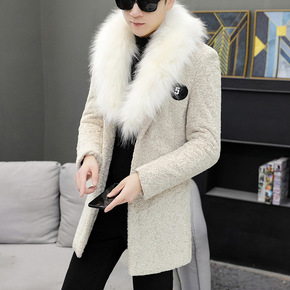 男中长款仿水貂绒毛领外套风衣韩版加厚保暖仿皮草颗粒...