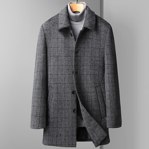 男士羊毛大衣新款修身型时尚中长款商务绅士毛呢休闲大...