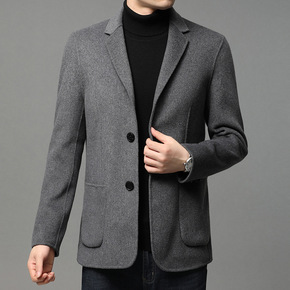 秋冬季毛呢大衣男羊毛中长款风衣韩版休闲呢子外套双面...