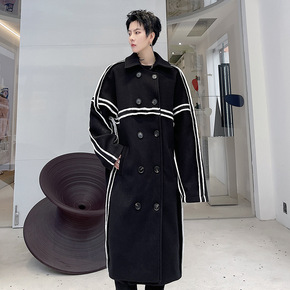 风衣男秋冬季外套中长款2021年新款毛呢大衣休闲成...