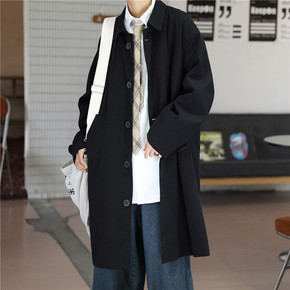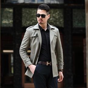 纯色男装2021春秋季新款经典时尚中长款风衣青年休...
