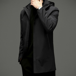 外套男中长款春秋百搭连帽夹克休闲时尚潮流百搭秋冬带...
