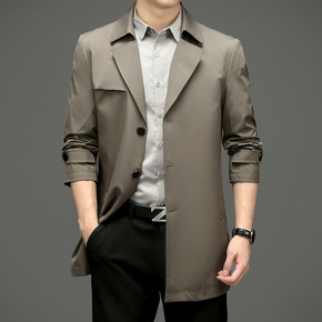 男士商务休闲外套秋冬时尚百搭中长款风衣韩版潮流中青...