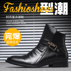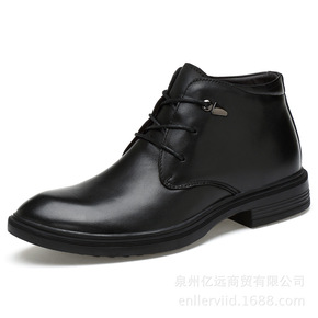 大码跨境尖头切尔西靴英伦套脚皮靴商务男靴子加绒增高...