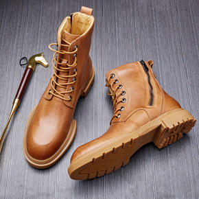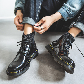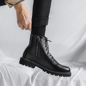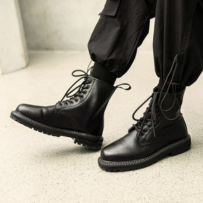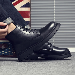 秋季马丁靴男英伦户外工装靴ins超火男士高帮鞋真皮...