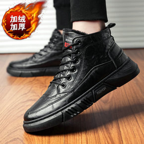 大码冬季长筒高帮大棉鞋男英伦休闲防滑户外加绒男士雪...