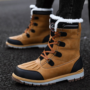 新款冬季保暖男靴 高帮男士靴子 加绒保暖棉鞋子休闲...