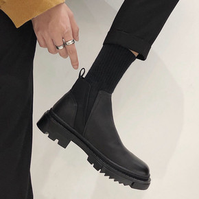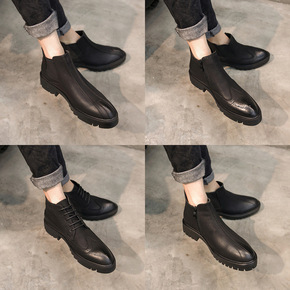 切尔西马丁靴男秋季休闲皮鞋ins黑色低帮中筒靴子潮...