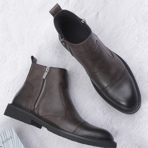 马丁靴男英伦风2021秋冬切尔西靴高帮男士皮靴中帮...