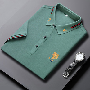 男士POLO衫短袖t恤夏季翻领纯色棉宽松大码男装虎...