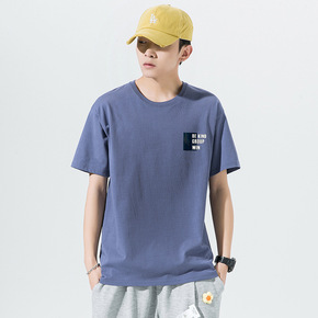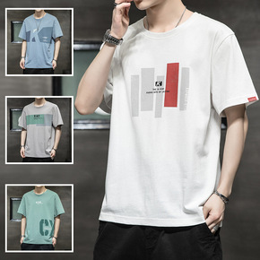短袖T恤男夏季新款男士纯棉韩版修身圆领印花百搭休闲...