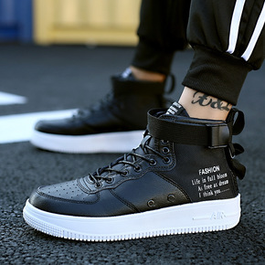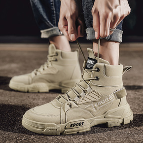 休闲鞋子男2021年春秋高帮板鞋飞行员皮面运动鞋中...