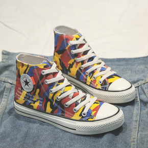 网红迷彩高帮帆布鞋男韩版潮流百搭街拍个性原宿港风学...