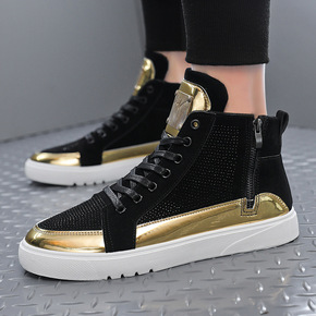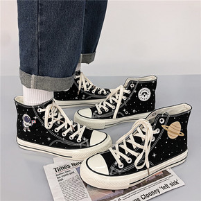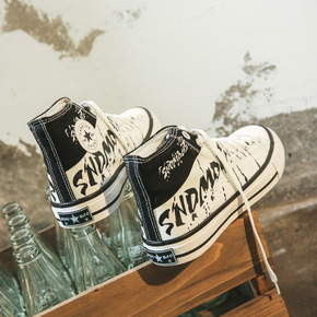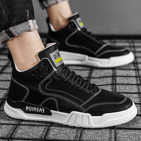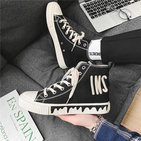 港风新款秋季高帮帆布鞋男潮流撞色运动鞋个性时尚男鞋...