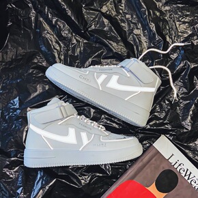 男鞋aj春季鞋子男反光潮鞋高帮男士运动休闲鞋百搭潮...
