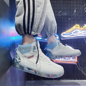 男鞋春季小白鞋男韩版潮流休闲运动气垫高帮鞋子增高板...