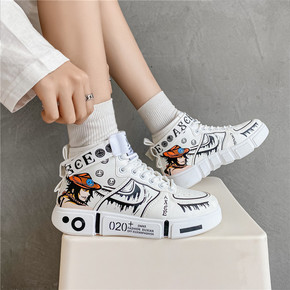 2021春季新款港风高帮帆布鞋男小熊刺绣韩版板鞋潮...