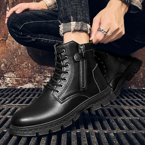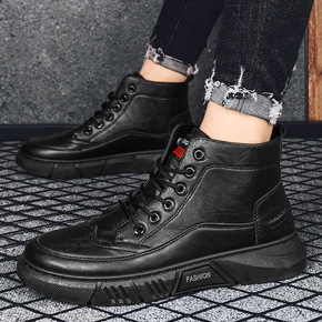 跨境2021新款男士高帮休闲皮鞋英伦潮流马丁靴大码...