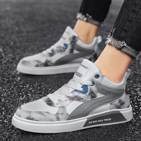 越行狼夏秋男鞋高帮透气飞织鞋厚底涂鸦网面鞋跨境大码...