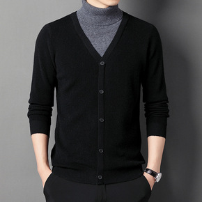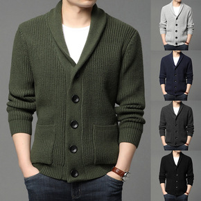 2022欧美毛衣开衫男士纯色单排扣针织秋冬上衣外套...