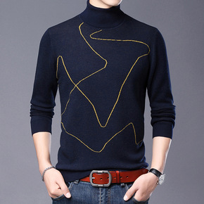 三岛2021秋冬高领套头男装新品针织衫 保暖男式气...