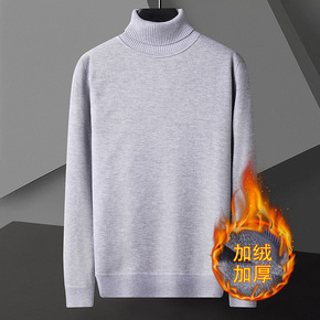 跨境贸易秋冬新款男士高领针织衫加绒加厚保暖两翻领韩...