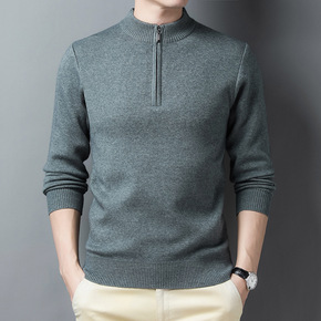 2022秋冬毛衣男欧美休闲纯色半高领长袖针织外套开...