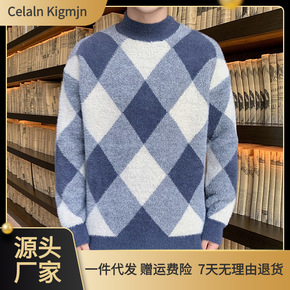 抖音秋冬新款针织衫男式长袖毛衣韩版青年时尚半高领毛...