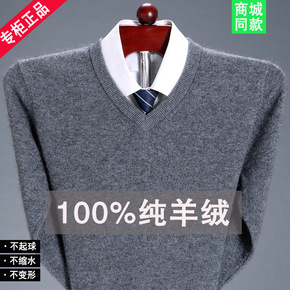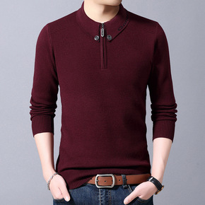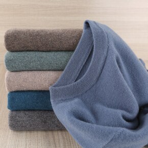 秋冬男士羊绒衫半高打底衫休闲圆领宽松型中年加厚毛衣...