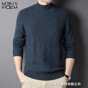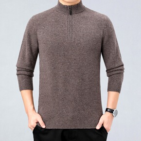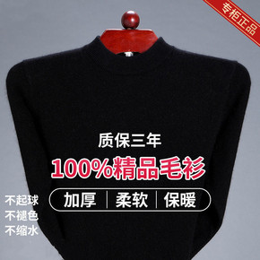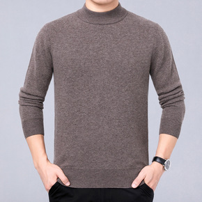 鄂尔多斯市100%纯男士羊毛衫半高圆领中年加厚毛衣...