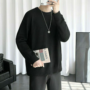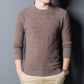 2021秋冬新款毛衣圆领打底衫男士长袖羊毛衫宽松纯...