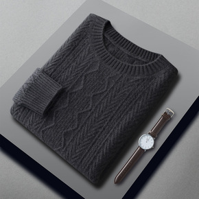 秋冬新款纯羊毛男士套头针织7针双股加厚羊毛衫圆领毛...