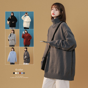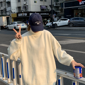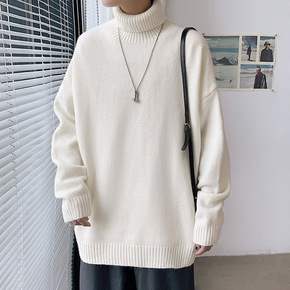中性风高领毛衣男2021秋冬日系纯色宽松休闲针织衫...