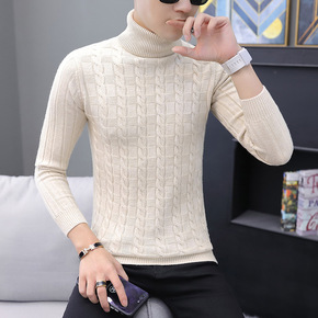 2021秋冬高领毛衣男式韩版纯色针织衫男士修身毛衫...