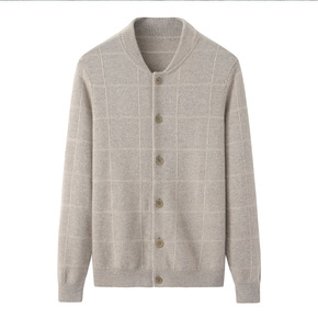 高档热卖秋冬上衣男士立领夹克休闲宽松大码纯羊绒衫男...