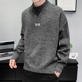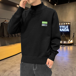 2021新款冬季纯色打底针织衫毛衣男半高领休闲男士...