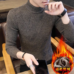英伦风半高领毛衣男2021秋冬修身中领打底衫套头菱...
