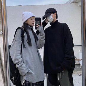 男上衣港风冬季高领毛衣纯色中性男女宽松针织衫青年学...